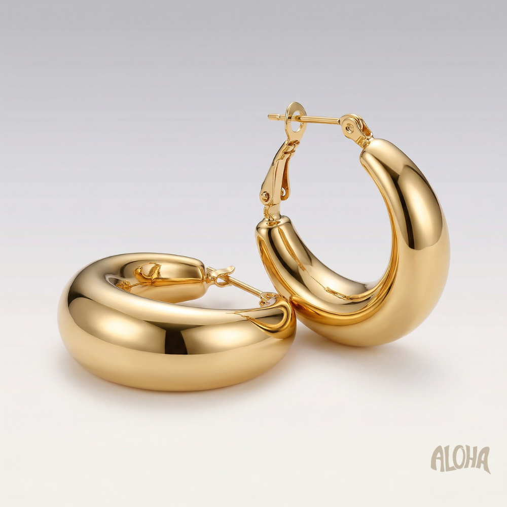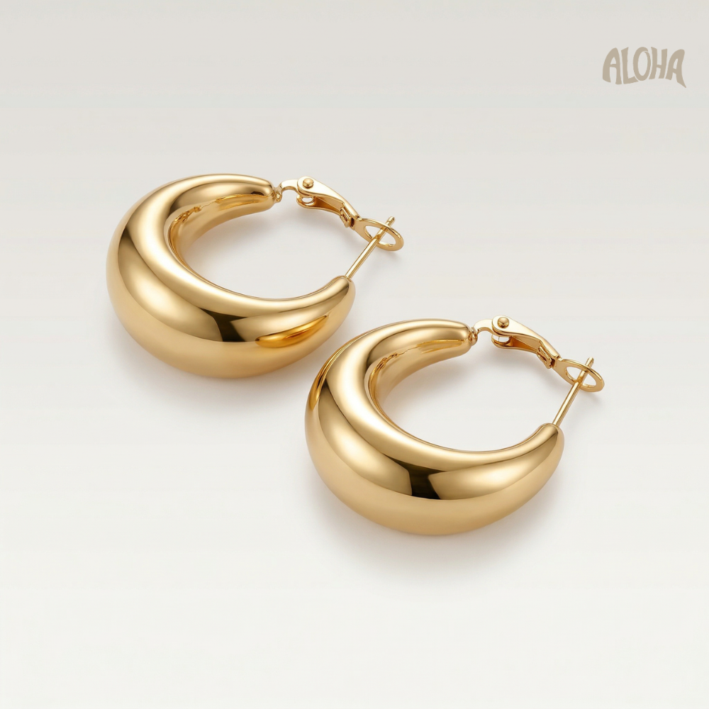 Boucles d’Oreilles Rym – Délicates et élégantes, ces petites créoles épaisses en doré sont parfaites pour un style chic et moderne.