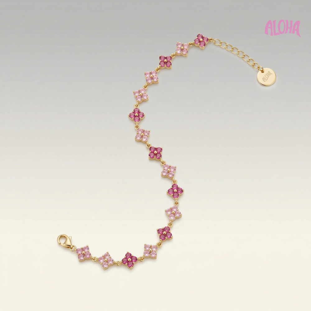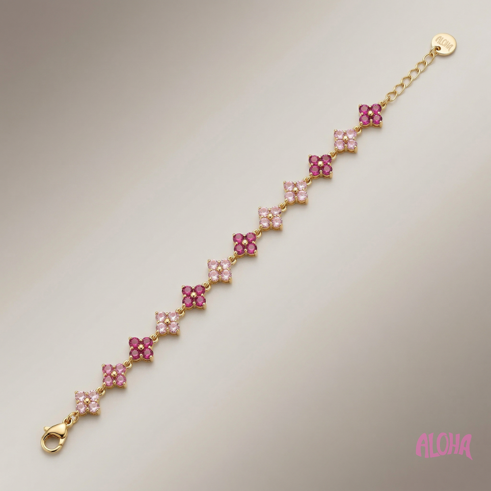 Délicat et lumineux, le Bracelet Georgina sublime votre poignet avec ses jolies fleurs ornées de perles brillantes en dégradé.