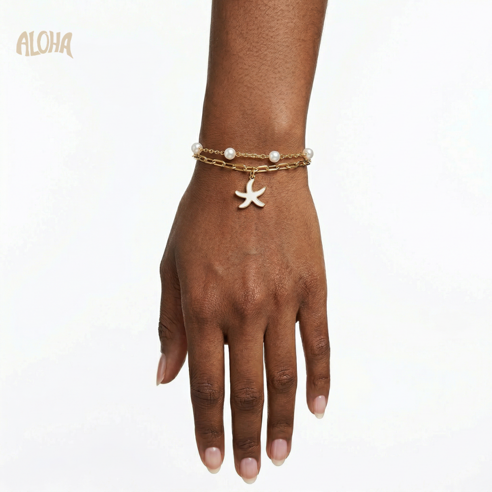 Esprit marin et raffiné, le Bracelet Starfish se compose de deux chaînes délicates ornées d’un charm étoile de mer et de perles lumineuses.