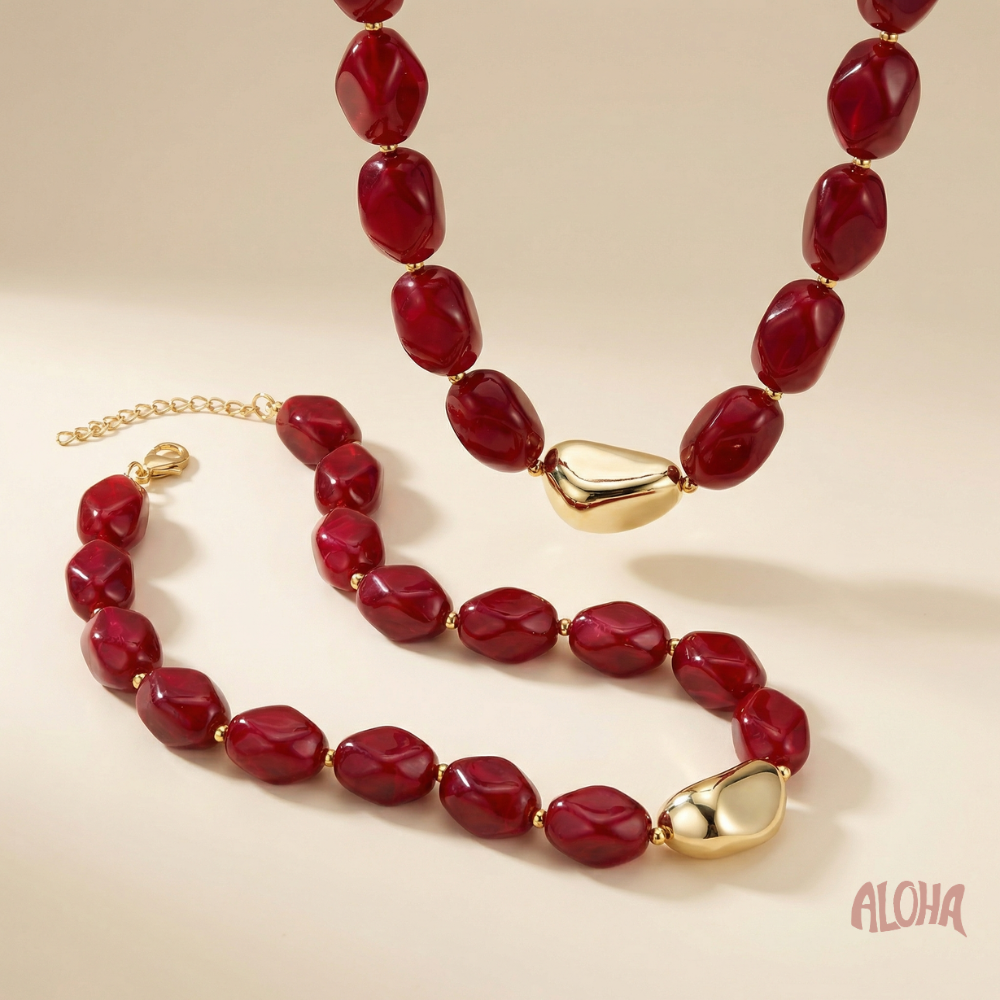 Vibrant et élégant, le Collier Jade se décline en vert ou rouge pour s’adapter à vos envies de style.